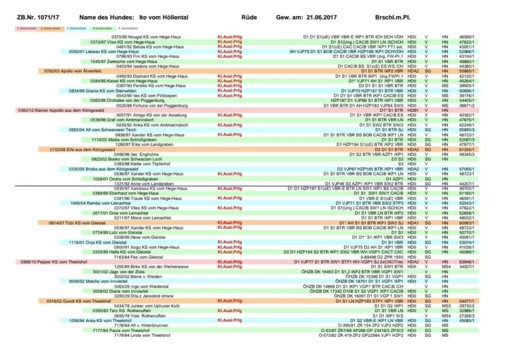 Weitere Daten (Fotos, Prüfungsergebnisse, Ahnentafel) zu den beiden Hunden sind auf der Homepage des DK-Verbandes unter Zuchthündinnen und -rüden ersichtlich und einzusehen.