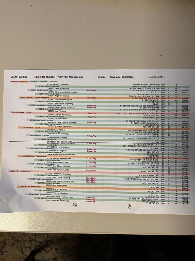 B2 Wurf aus dem DK Zinger „Vom Nonnenhaus“ mit einer Welpenstärke von 7/1, alles Braunschimmel mit einfarbigen Köpfen. Der Wurf ist aus Yuky vom Nonnenhaus und Fox von der Nienburg gezogen
