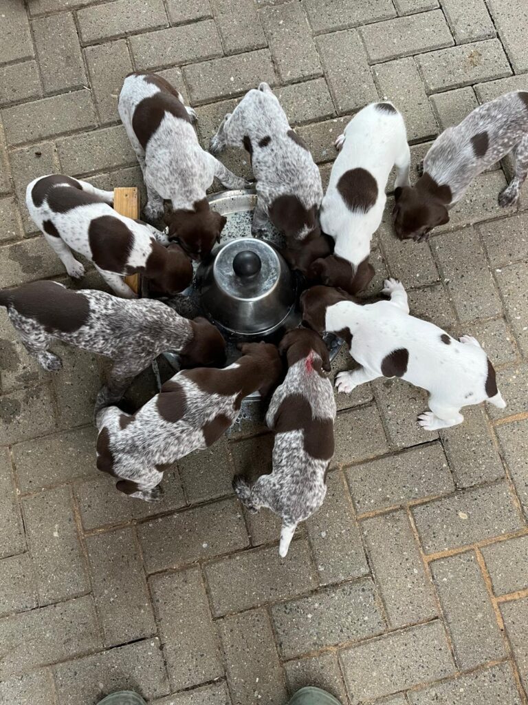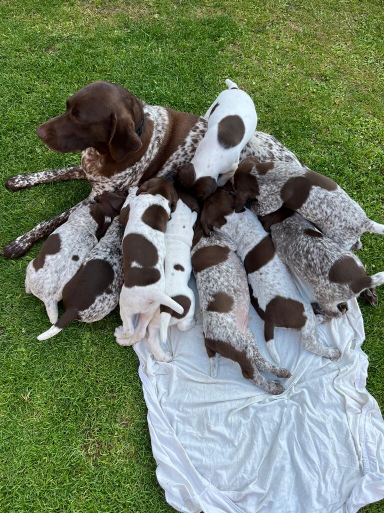Die Welpen werden ab dem 19.07. 2023 an interessierte Jäger und -innen, wie üblich abgegeben. Infos unter Handy 01603893621.